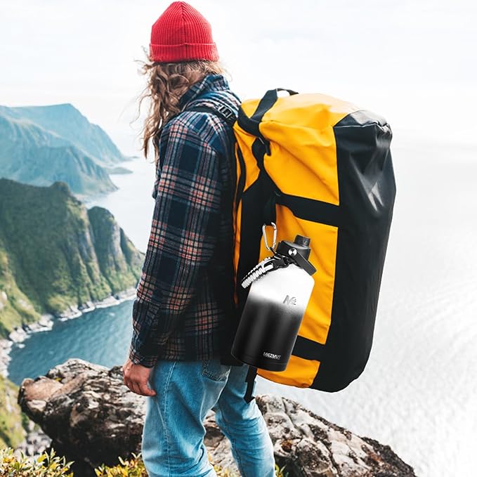 • 【Food Grade Material】64 oz insulated water bottle is made of 18/8 food grade 304 stainless steel,BPA-free which provides a healthy drinking experience for users.Matte finish with powder coating offers a firm grip against slips, don't worry about peeling or rusting.