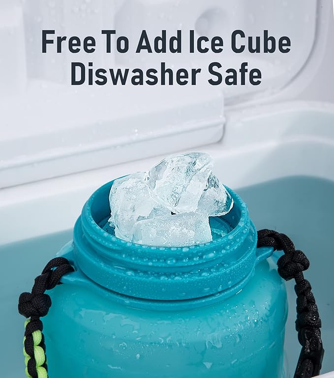 • SAFE - Follow our high safety standards, TakeToday gallon water bottle is made with BPA-free pacifier-grade silicone and BPA-free plastic, making it nontoxic, odor-free, and suitable for hot and cold drinks. The wide mouth allows for easy cleaning and adding ice, and it's dishwasher-safe for hassle-free cleaning.
