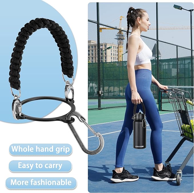 • Paracord Handles & Strap:32 oz water bottles Equipped with high quality colorful nylon braided Paracord Handles, bid farewell to the uncomfortable grip feeling, make the lifting more relaxed! Insulated 32 oz water bottle also comes with a 70.86 inches retractable strap, which can be worn directly on the body to free your hands and allow you to ride, climb, hike, rock climb and surf freely.
