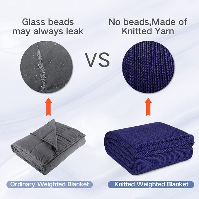 • PREMIUM FABRIC-Material contains soy fiber. Differentiate from other normal weighted blankets, No beads design achieved by adding the density of the yarn, Don't worry about cleaning the beads scattered everywhere in the room. The handmade super chunky knit weighted blanket makes the weight even,and the beads on the body won't run around. knitted weighted blanket brings maximum soft and comfort.