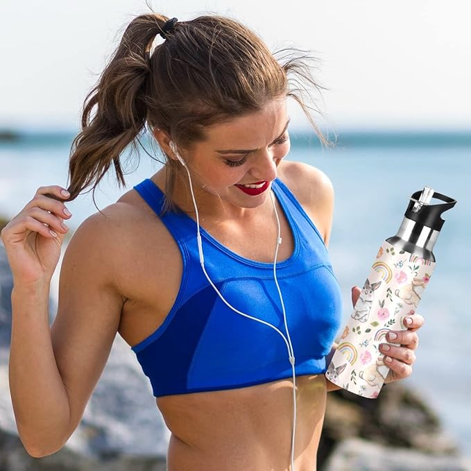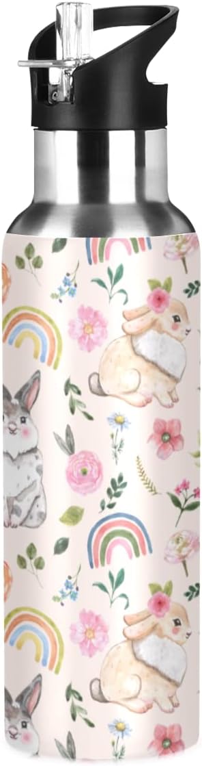 MNSRUU Insulated Water Bottle with Straw, Rainbow and Unicorns Stainless Steel Flasks for Sports Cycling Hiking School