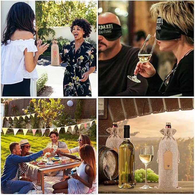 • 【High Quality Wine Gift Bags】The wine bags is made of high quality jute cloth, the cloth made of jute plant fiber has its own unique smell, without any chemical agent added, natural and environmental protection. The wine bottle bags absorbs moisture and is dustproof, wear - resistant and durable. Supports hand washing and can be reused