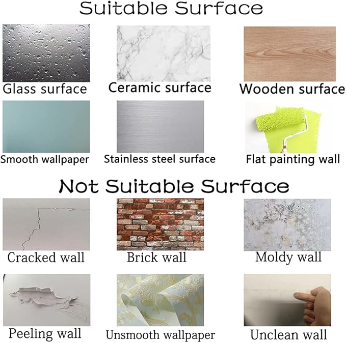 • Suitable for any flat, smooth, clean and dry hard surface, but not suitable for dirty or rough surfaces, and will not fall off for a long time. (Usually 5-8 years)