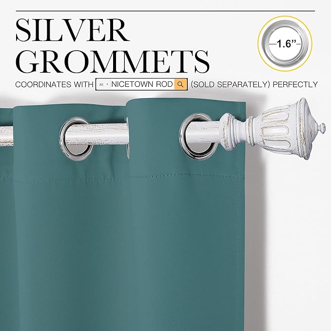 NICETOWN Blackout Curtains for Kids Room - Triple Weave Microfiber Home Thermal Insulated Solid Ring Top Blackout Panels/Drapes for Bedroom(Sea Teal, Set of 2, 55 x 90 Inch)