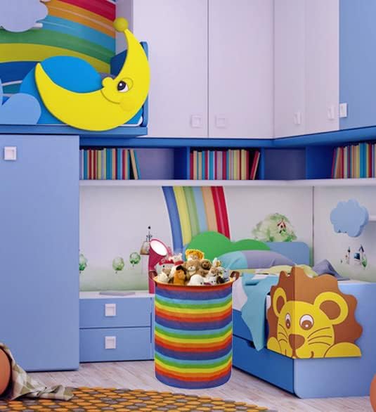 Rainbow Laundry Hamper,Kids Laundry Basket Collapsible Baby Storage Baskets for Kids Room Decor,Colourful Hamper,Toy Organizer,(Rainbow stripe) …