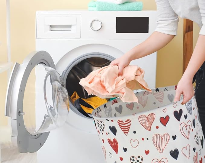 Large Kids Laundry Hamper,Heart Laundry Basket Collapsible Girls Storage Baskets for Baby Room Decor,Nursery Hamper,Toy Organizer,(Line love) …