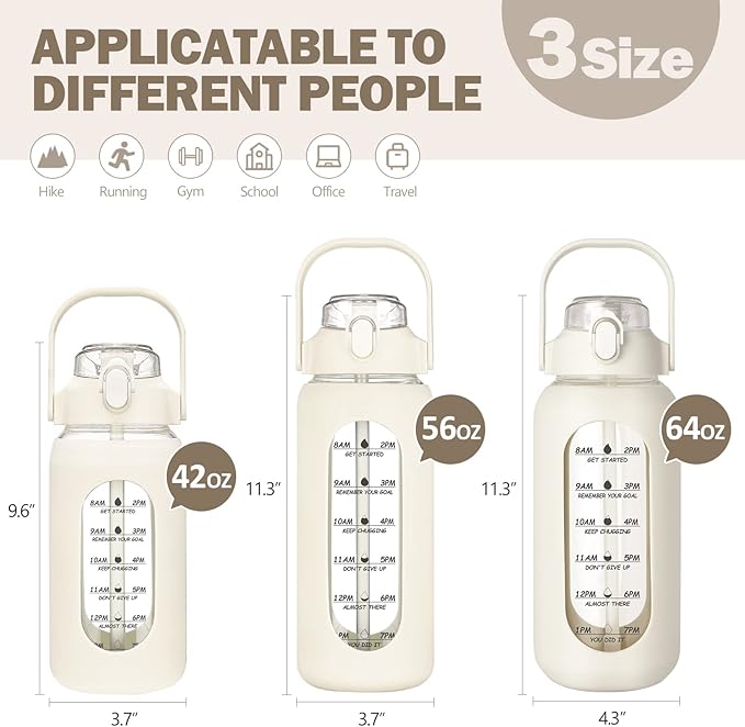 • Motivational Inspiration: The water bottle has motivational quotes and time markers to remind you to drink the perfect amount of water.