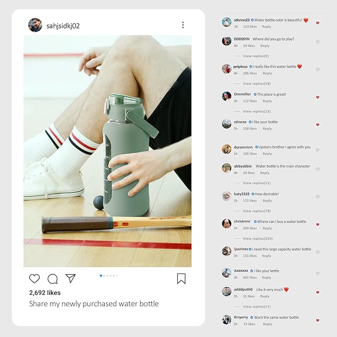 • ❤More Function- Our glass water bottle with stylish silicone sleeve which provides more grip and prevents the water bottle from slipping out. -This large motivational water bottle has a wide mouth, not only easy to hold ice cubes and fruit but also very easy to clean, you can use our complimentary cup brush to clean your water glass. -Handle on the lid for easy portability.