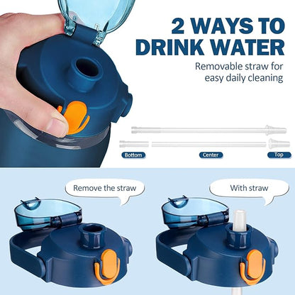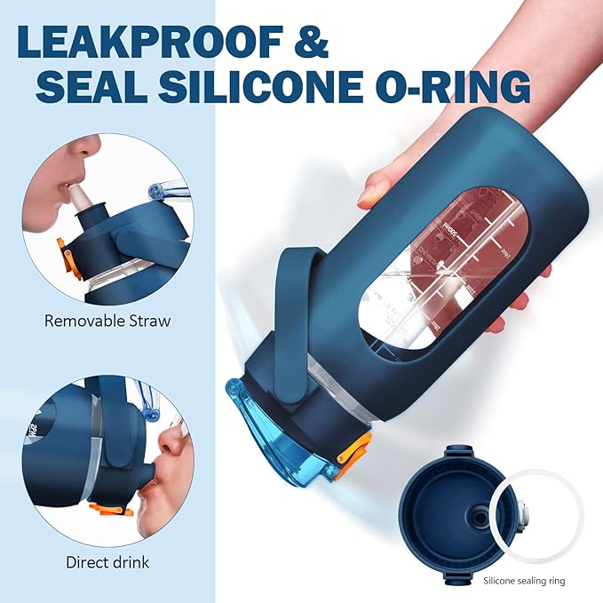 • ❤Glass Water Bottle with Pop-up Straw Lid- Our 64oz water bottle with straw is designed with an upgraded lid that ensures 100% leakproof and dustproof. Advanced one-click button makes you drink easier, just push the button and the straw will pop out automatically.
