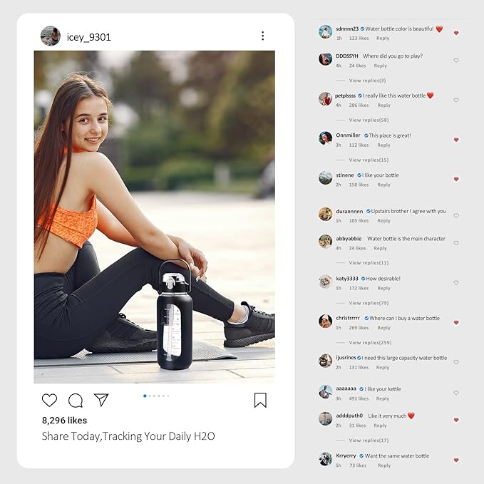 • ❤High-Quality Borosilicate Glass Bottle- This large motivational water bottle is made of odorless, quality, borosilicate glass. Straw and lid are made of food-grade PP, BPA-free and eco-friendly.