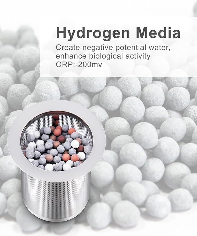 • Reducing ORP technology: alkaline water filter contains natural alkaline stone sintered at a low temperature of 800 ℃, which effectively reduces OPR in water to -150mv, and effectively keeps your body active for a long time Alleviate your anxiety about age.