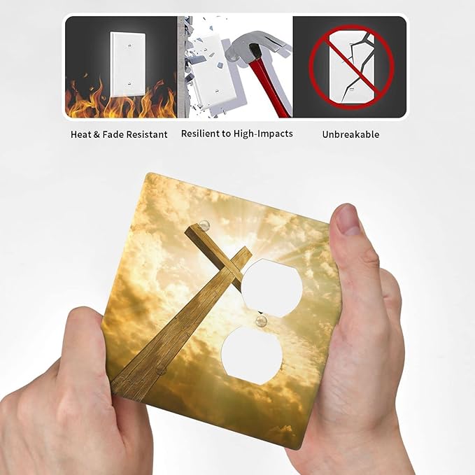 Christ Jesus Cross Sky Decorative Combo 1 Blank Duplex Outlet Switch Cover Wall Plate 2 Gang for Electrical Kitchen Living Room Bedroom Bathroom Home Novelty Decorate