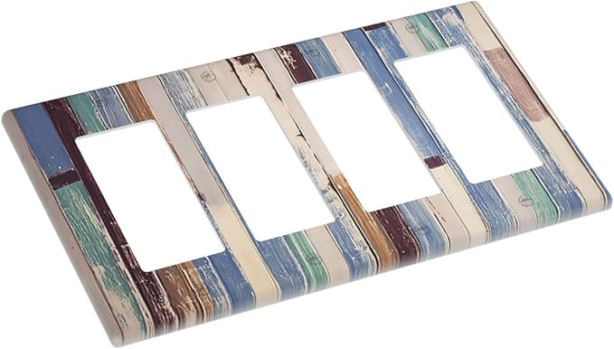 Vintage Wood Texture Farmhouse Decorative Light Switch Cover Wall Plate 4 Rocker Quad Gang Four Decora for Outlet Kitchen Living Room Bedroom Bathroom Home Novelty Receptacle Decorate