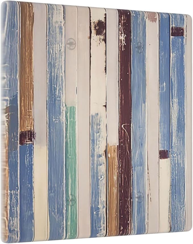 Vintage Wood Texture Farmhouse Decorative Double Blank Switch Cover Wall Plate 2 Gang Two for Electrical Outlets Kitchen Living Room Bedroom Bathroom Home Novelty Decorate