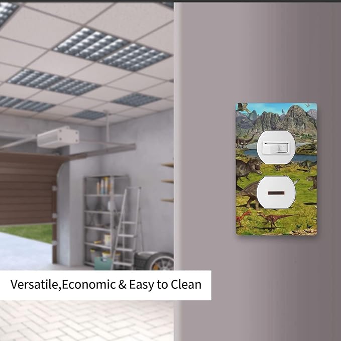 Cute Dinosaur Duplex Outlet Switch Wall Plate Cover Decorative 1-Gang for Electrical Boys Kids Room Bathroom Bedroom Home Kitchen One Receptacle Polycarbonate Power Gear 4.5" x 2.76"
