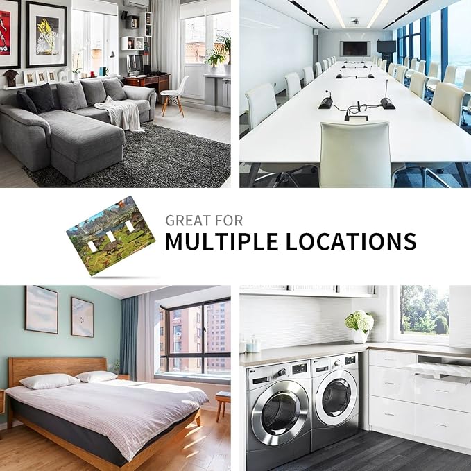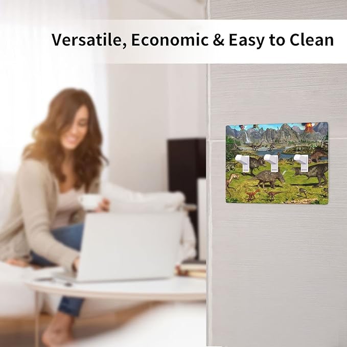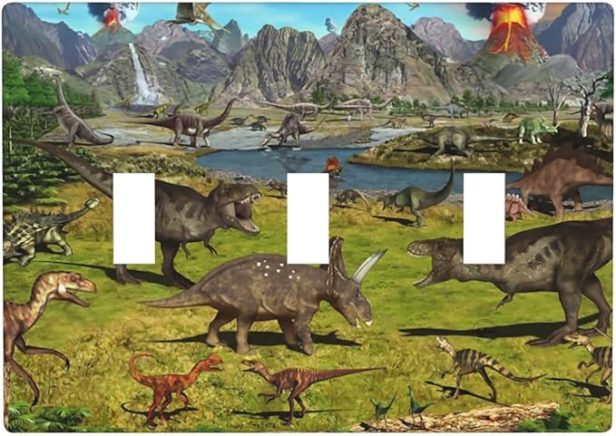 Cute Dinosaur Triple Toggle Light Switch Wall Plate Cover Decorative 3-Gang for Boys Kids Room Bathroom Bedroom Home Kitchen Three Lightswitch Polycarbonate 4.5" x 6.38"