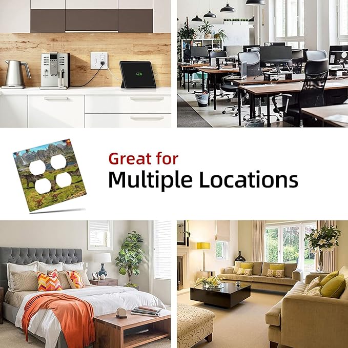 Cute Dinosaur Double Outlet Switch Wall Plate Cover Decorative 2-Gang for Electrical Boys Kids Room Bathroom Bedroom Home Kitchen Two Receptacle Polycarbonate Power Gear 4.5" x 2.76"