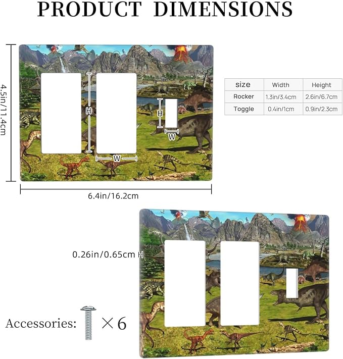 Cute Dinosaur Combo 2 Rocker 1 Toggle Light Switch Wall Plate Cover Decorative 3-Gang for Electrical Outlets Boys Kids Room Bathroom Bedroom Home Kitchen Two Decora Receptacle 4.5" x 6.38"