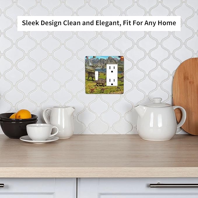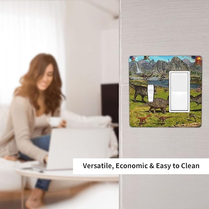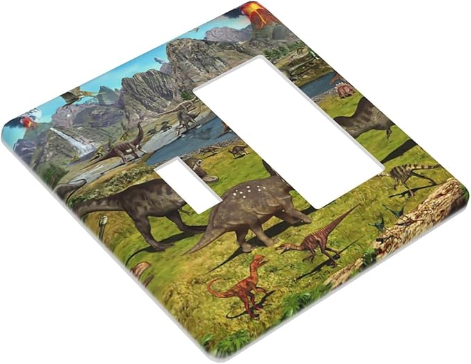 Cute Dinosaur Combo Single Toggle 1 Rocker Light Switch Wall Plate Cover Decorative 2-Gang for Electrical Outlets Boys Kids Room Bathroom Bedroom Home Kitchen One Decora Receptacle 4.5" x 4.6"
