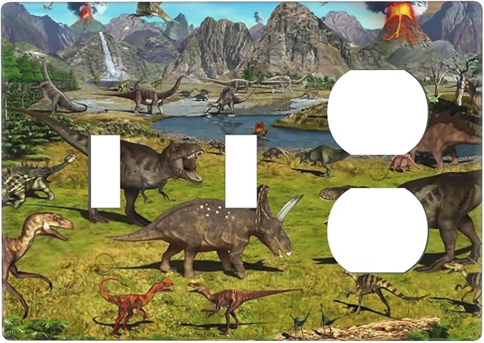Cute Dinosaur Combo 2 Toggle 1 Duplex Outlet Light Switch Wall Plate Cover Decorative 3-Gang for Electrical Boys Kids Room Bathroom Bedroom Home Kitchen One Receptacle 4.5" x 6.38"