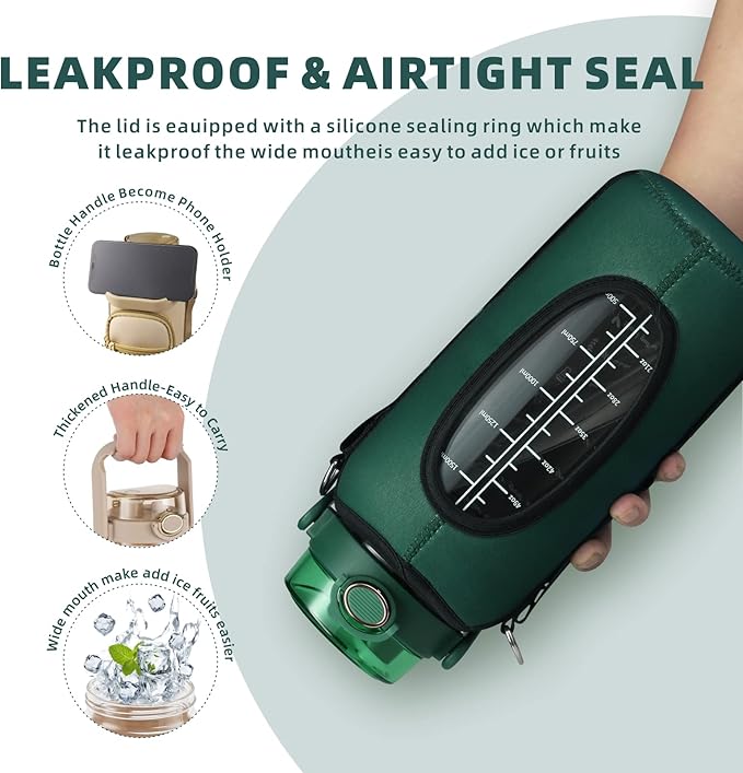 • Glass Water Bottle With Sleeve and Strap: This glass water bottle with straw is designed with high quality 5mm Neoprene sleeve to protect water bottle from slight bumps and absorb sweat to avoid dripping on table or seat. It’s an all-in-one water tracker bottle, water bottle sleeve with 2 pockets to storage phone, card,airpods, key and motivational water bottle with comfortable padded shoulder strap & wrist strap for hands free carrying. You can adjust the strap ensure a snug fit
