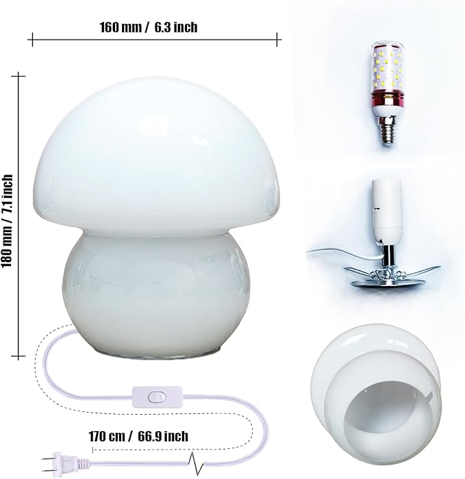 • 【Ceramic Glass, high quality material】:This mushroom lamp is made of high-end ceramic material glass that is fully hand-blown, with high strength, not easy to break, and will not turn yellow like plastic after long-term use. Built-in high-quality LED lights, long life, low energy consumption, no radiation, harmless to babies/children, etc.