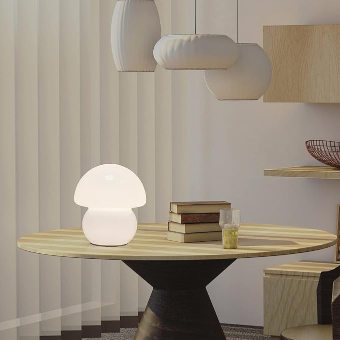 • 【Unique Hand-Blown Glass Lamp】:Made from glass with a timeless silhouette. It could be as a decorative mushroom night light but also works well as a modern glass lamp on the sideboard, bedroom, living room, dining room, coffee shop, bar, etc. Excellent gift for Holidays, Birthday, Valentine's Day, Christmas Thanksgiving.