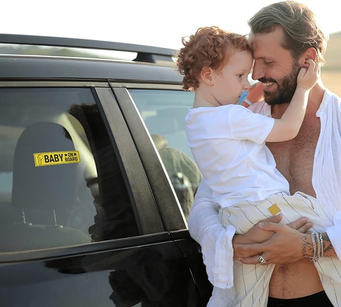 • BABY ON BOARD STICKERS - The waterproof and high-quality sticker has a strong adhesive that will not peel off your car window and is designed to withstand all weather conditions. Because it is applied to the outside of the vehicle, it can be used with tinted windows.