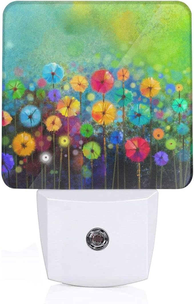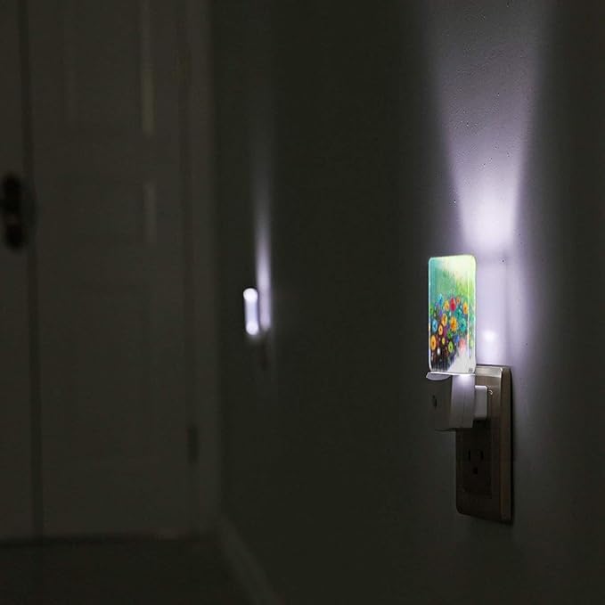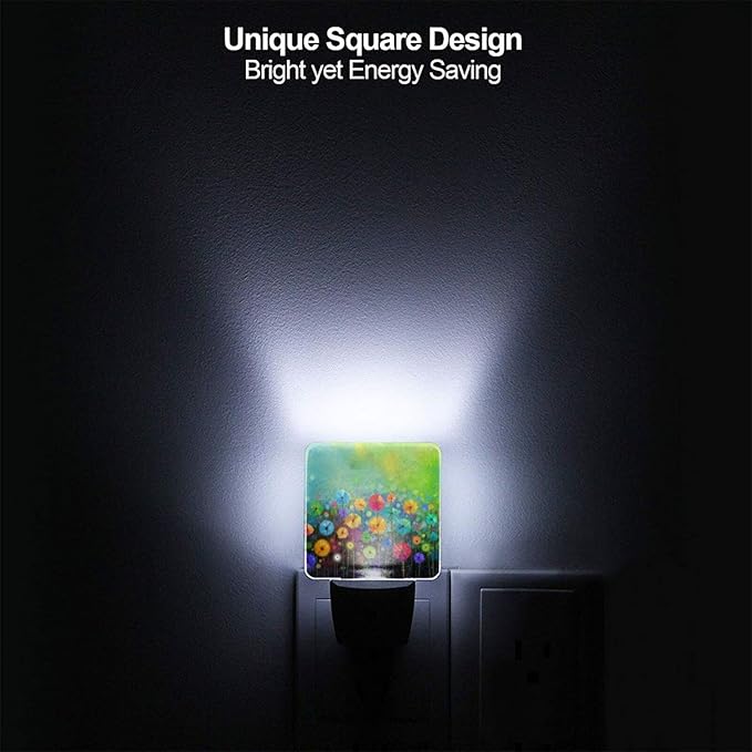 Nature Watercolor Floral Night Light Plug into Wall Decorative Plug in LED Nightlight Auto Sensor Dusk to Dawn Decor Lamp for Kids Girls Bedroom Bathroom Kitchen Hallway Stairs Home