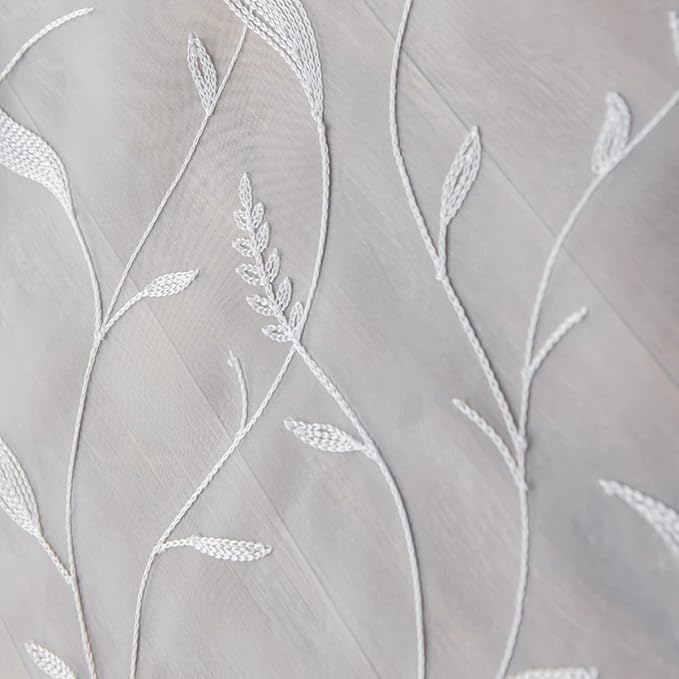 Windows Embroider-Leaf Sheer White Curtains 63 Inches Length 2 Panels Voile Light Filtering Sheer Curtains Panel Basic Rod Pocket Sheer for Bedroom Living Room Children Room Kitchen Yard