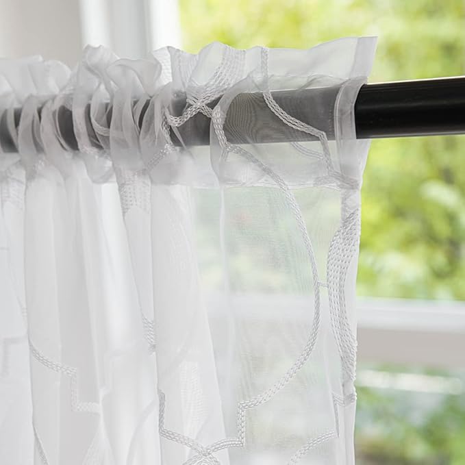 Windows Embroider-Stripe Sheer White Curtains 63 Inches Length 2 Panels Voile Light Filtering Sheer Curtains Panel Basic Rod Pocket Sheer for Bedroom Living Room Children Room Kitchen Yard