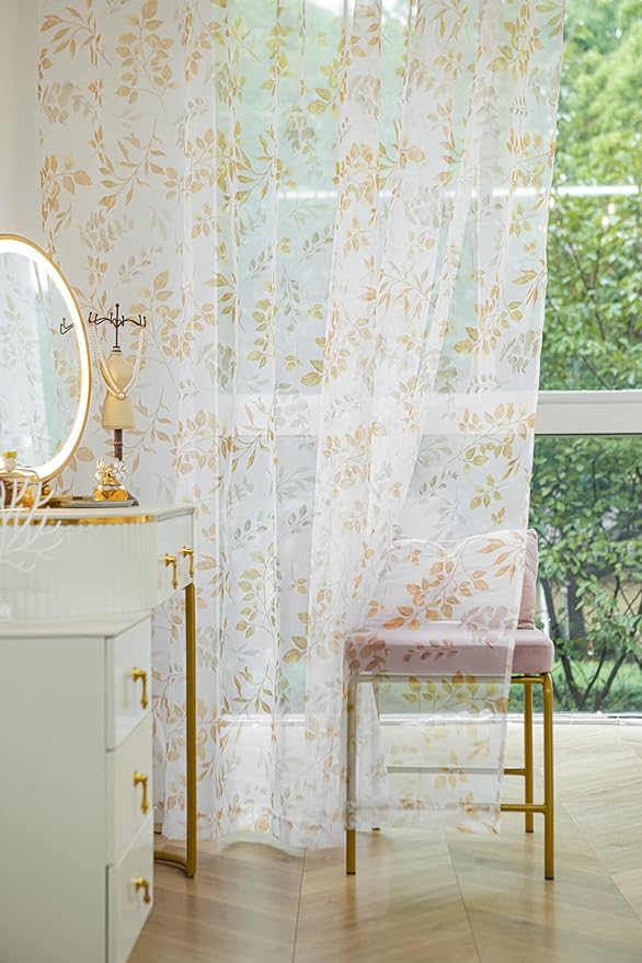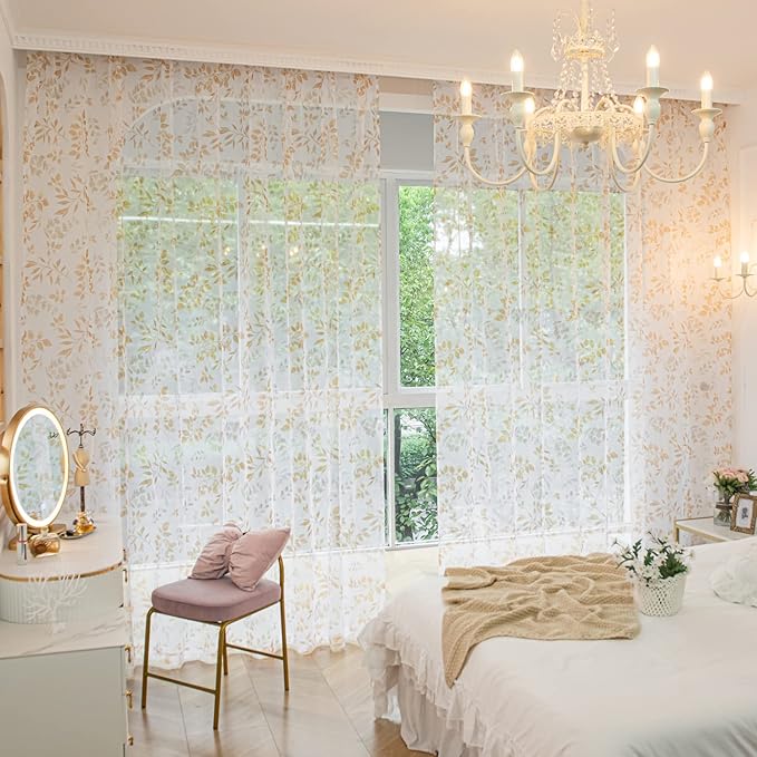 Windows Printing Pattern Sheer White Curtains 84 Inches Length 2 Panels Voile Light Filtering Sheer Curtains Panel Basic Rod Pocket for Bedroom Living Room Children Room Kitchen Yard
