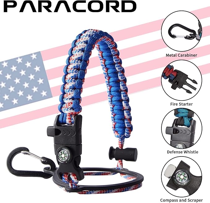 • UNIQUE PARACORD—Perfect Accessories: bright color paracord matches the flask water bottle to give you a youthful vibe while adding a personal style. It comes with a compass, safety loop, metal carabiner, flint, igniter, and whistle to become your survival tool for your wild adventures