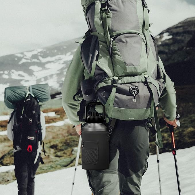 • EASY TO CARRY: ZUWOZU gallon jug with handle features with a carrying case that has two pouches for your cell phone or cards. The adjustable wider shoulder strap relieves pressure on the shoulder and makes carrying easier. The ergonomic handle reduces hand pain when filling, making it the perfect companion for adventures.