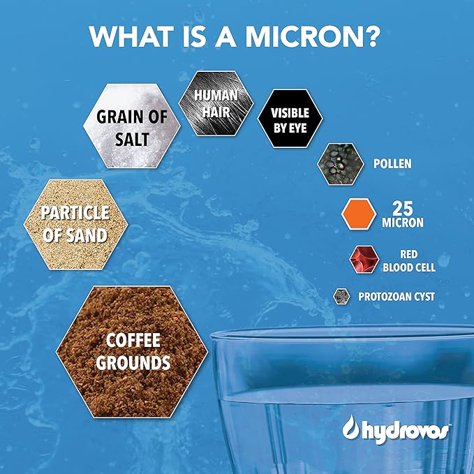 • PROTECTION FOR YOUR WHOLE HOME – HV-WHBB10-25M Polypropylene Water Filters can reduce sediment and particulate matter, down to 25 microns in size, smaller than a white blood cell! It also reduces dirt, rust, sand, silt and more. Great for wells and water supplies with larger particulate matter.