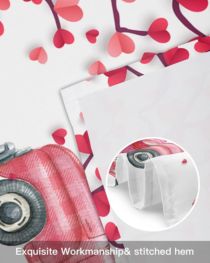 Happy Valentine's Day Valances Kitchen Curtains for Windows,Valentines Gnomes Farmhouse Trucks Rod Pocket Valances Pink Hearts Tree Decor Short Curtains for Bedroom/Living Room,54" X 18" -1 Panel