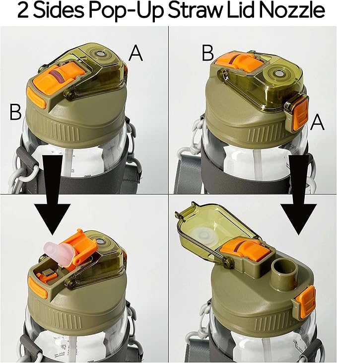 • 2-Way Pop Open and Lock Dual Spout - Comes with straw, it reaches all the way to the bottom and the flow is so smooth. You can either use straw or drinking spout. Lid closure without leaks.