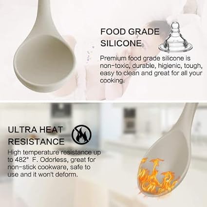 • DURABLE & HEAT RESISTANT - Made from premium quality, food-grade silicone material and durable wooden handles. Silicone can withstand high temperatures up to 446°F (230°C), making it safe for use on hot surfaces without melting or warping. The wooden handles provide a comfortable and secure grip while cooking and serving, and add a touch of elegance to your kitchen decor.
