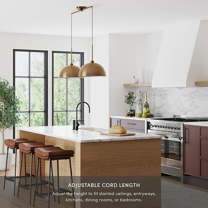 Nathan James Percy Modern 2-Light Pendant Island Light Fixture, Brass Hanging Lights with Gold Metal Shade and Adjustable Cord, for Kitchen, Living Room, Vintage Brass