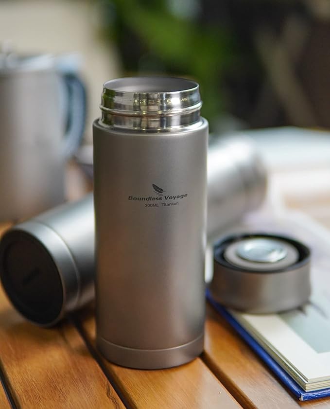 Boundless Voyage Titanium 300ml/450ml Vacuum Water Bottle with Tea Filter Double-Walled Lightweight Leak-Proof Sport Water Bottle for Travel Outdoor Office (10 fl oz)