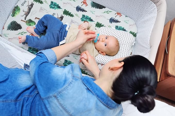 4 Pack N Play Sheets Woodland Forest Animals Wood Neutral Unisex Fitted Baby N Play Sheets Fitted for Standard Pack and Plays and Mini Cribs Set for Baby Boys or Girls