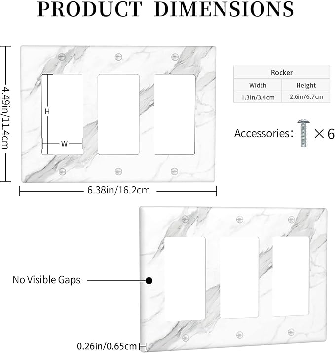• Size:triple rocker wall plate : 4.65" x 6.57".the standard Size is easy to install on the wall grid, covering more wall defects, which makes it easy to decorate any standard switch cover and electrical socket.