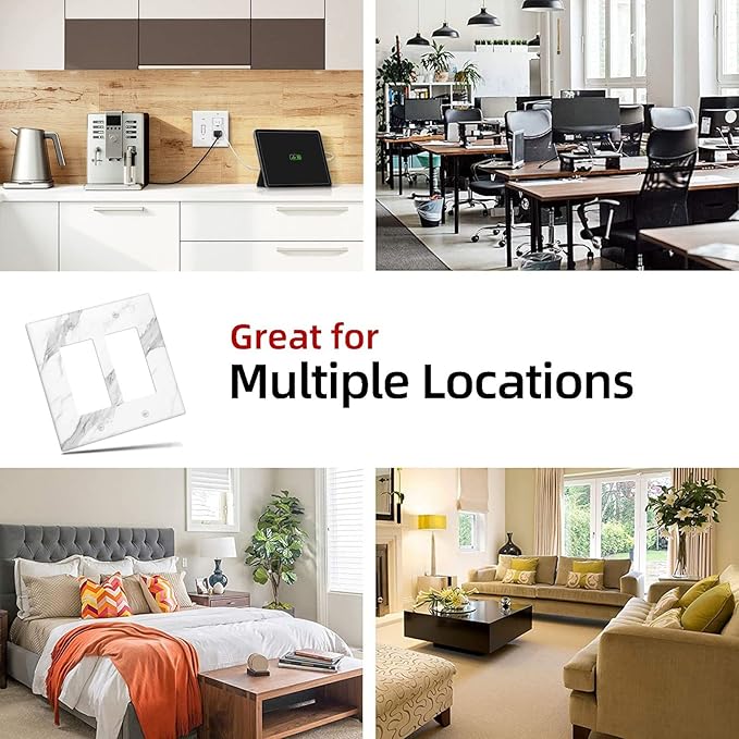 • Size:double rocker wall plate : 4.5" x 4.6".the standard Size is easy to install on the wall grid, covering more wall defects, which makes it easy to decorate any standard switch cover and electrical socket.