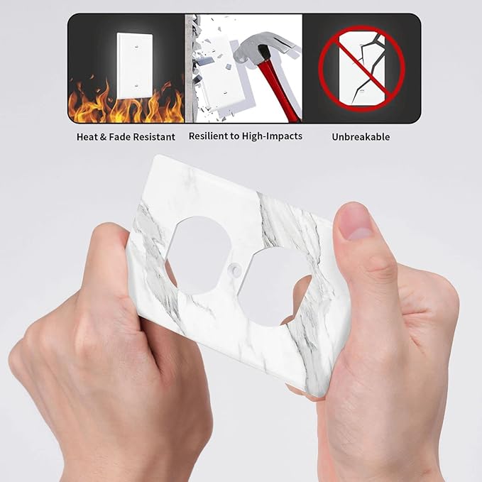 Marble Grey Wall Plate Decorative Light Switch Cover 1-Gang Single Duplex Outlet Faceplate for Kitchen Bathroom Bedroom Room Receptacle White