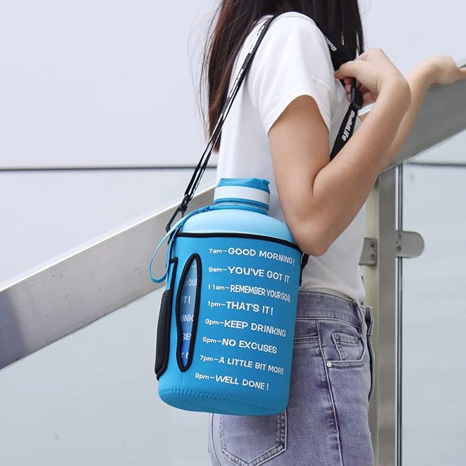 • 【 MOTIVATIONAL TIME MARKER】With unique inspirational quote and time marker, QuiFit one gallon water bottle with straw is great for measuring your daily intake of water, reminding you stay hydrated and drink enough water throughout the day. 1 gallon water jug with time marker is a must have for the gym, sports, yoga, hiking, camping, & traveling.