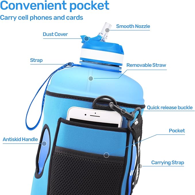 • 【 FRIENDLY DESIGN】Giant water bottle gallon with wide-mouth opening is easy to fill with ice cubes and clean. Mouthpiece with straw making drinking easier,and dust cover help drinking health. QuiFit 1 gallon water bottle with straw is a sport water bottle with measurements designed especially for athletes, runners, cycling & fitness enthusiasts, outdoors lovers and anyone else who needs to stay hydrated while staying active.