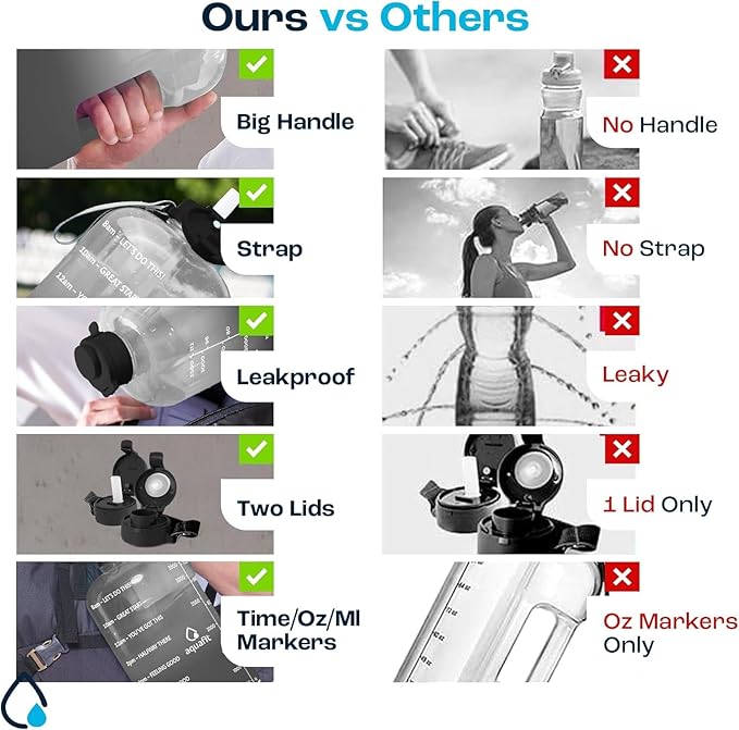 • Track How Much You Drink - Our BPA Free one gallon water bottles come with time markers on the side so you can see your daily water intake and stay on track meet your health and fitness goals.