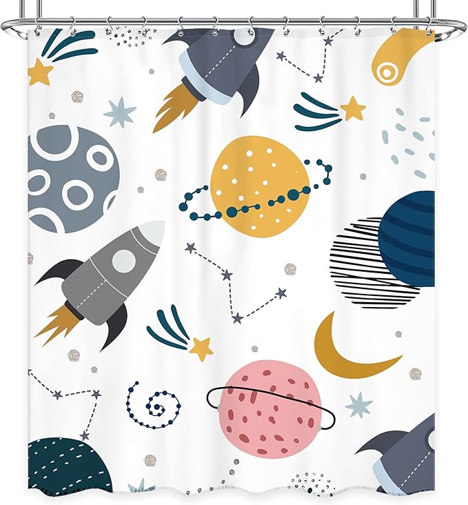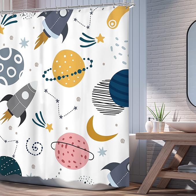 • ▶Unique Design: Designed with universe planet rocket pattern printing technology, vibrant and vivid, give your bathroom a new feel.