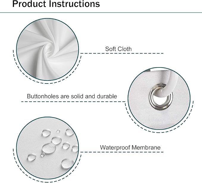 • ▶What' s Included: Each fabric shower curtain features 12 high-quality plastic hooks.