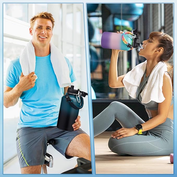 • TRIPLE-INSULATION HALF GALLON WATER BOTTLE - VICKNIY metal water bottle material is food-grade 18/8 stainless steel. Vacuum insulated triple wall design keeps your beverage at the perfect temperature all day long(Cold-48H & Hot-24H)! The wide mouth waterbottle easy filling water and ice, water jug complete sweat-proof and has anti-slip powder coating, no more messy using